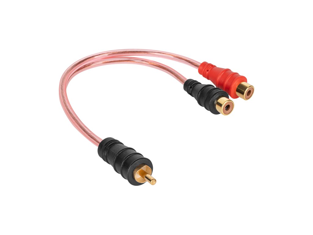 Pripojovací kábel RCA zástrčka - 2x RCA zásuvka, rozbočovač, plastové zástrčky, pozlátené koncovky
