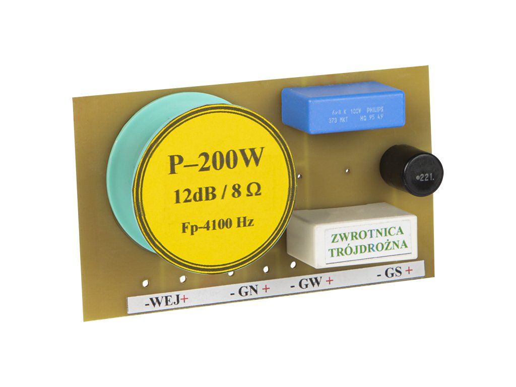 Táto výhybka je navrhnutá pre spoľahlivú spoluprácu s basovým, stredovým a výškovým reproduktorom. Frekvenčné delenie je nastavené na Fp 800/4,1 kHz, čo pomáha lepšie oddeliť jednotlivé pásma a zlepšiť celkovú čitateľnosť zvuku. Sklon 12 dB podporuje účinné filtrovanie signálu medzi jednotlivými cestami.