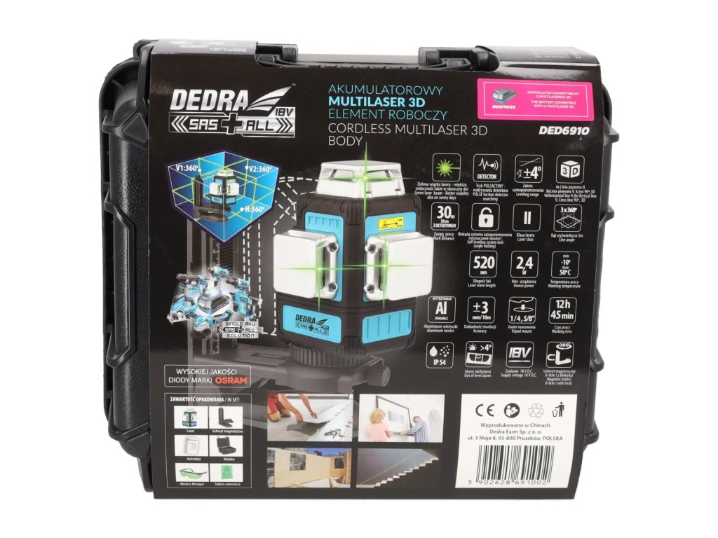 Technické údaje laserovej vodováhy 3D DEDRA SAS+ALL DED6910: