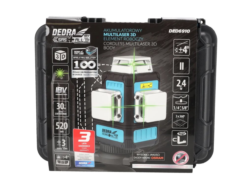 3D laserová vodováha DEDRA SAS+ALL DED6910, zelený laser