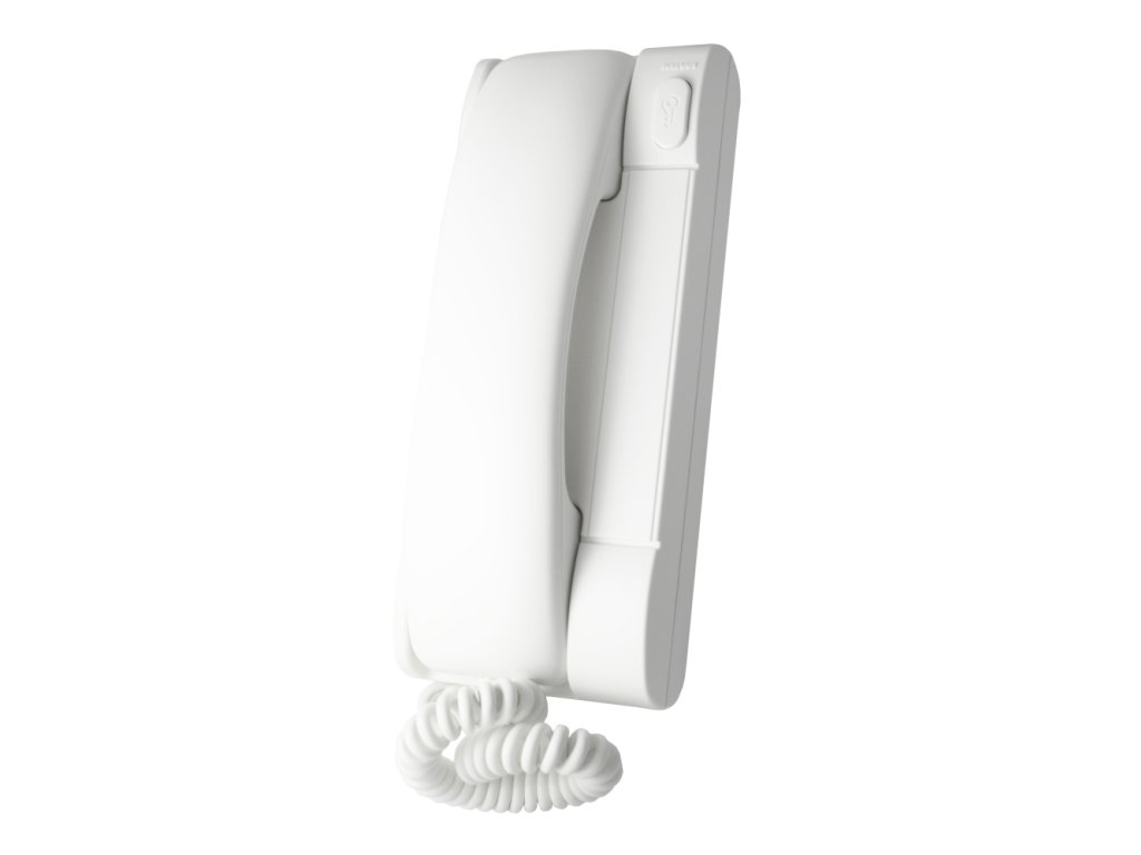 Unifón 1132 je vybavený tlačidlom otvorenia dverí a je vyrobený z bieleho plastu.