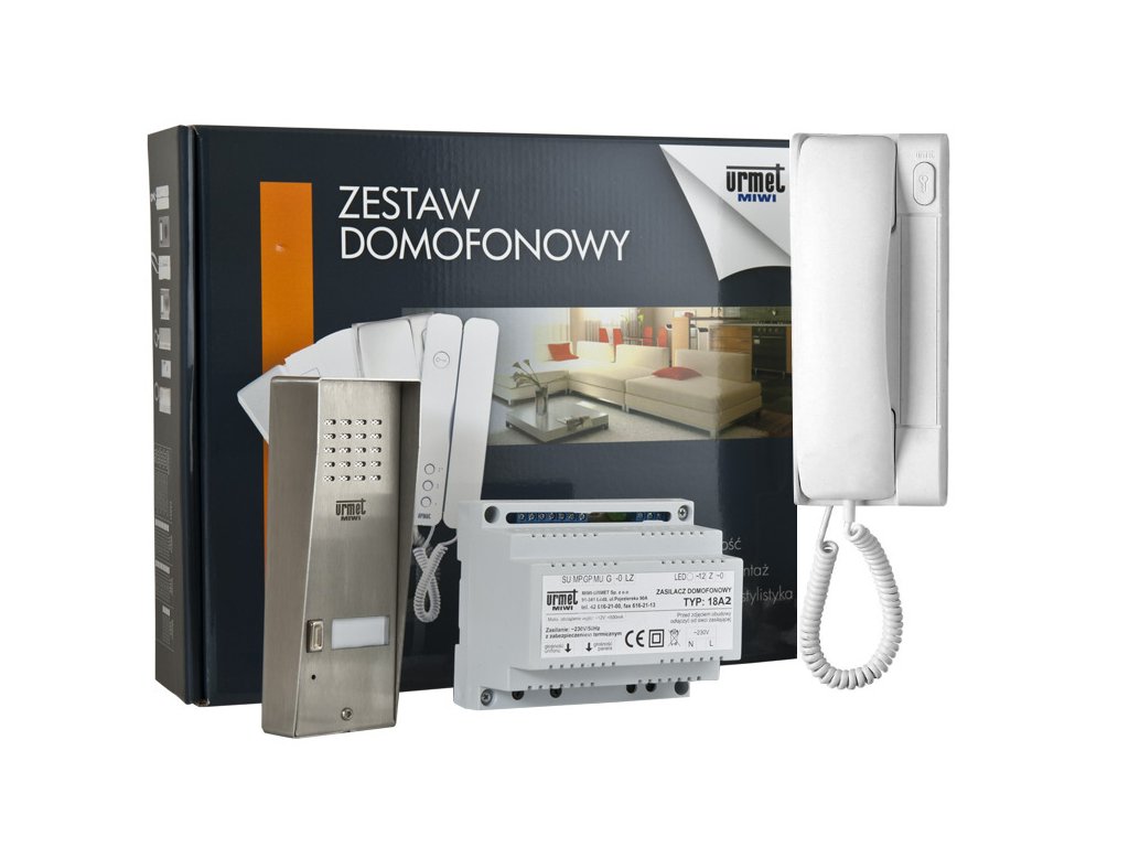 Napájací zdroj 18A2 patrí k najnovšej generácii napájacích zdrojov od spoločnosti MIWI-URMET. Rovnako ako všetky napájacie zdroje vyrábané firmou MIWI-URMET má vstavaný obvod, ktorý realizuje funkciu „odposluchu“ (akustické potvrdenie volacieho signálu na vstupnom paneli). V napájacom zdroji je možná regulácia hlasitosti panelu a unifónu. Ďalším prvkom je triak, ktorý zapína obvod elektrického zámku. Napájací zdroj poskytuje napájanie celému zostaveniu. Prístroj je prispôsobený na montáž na stenu alebo na DIN lištu.