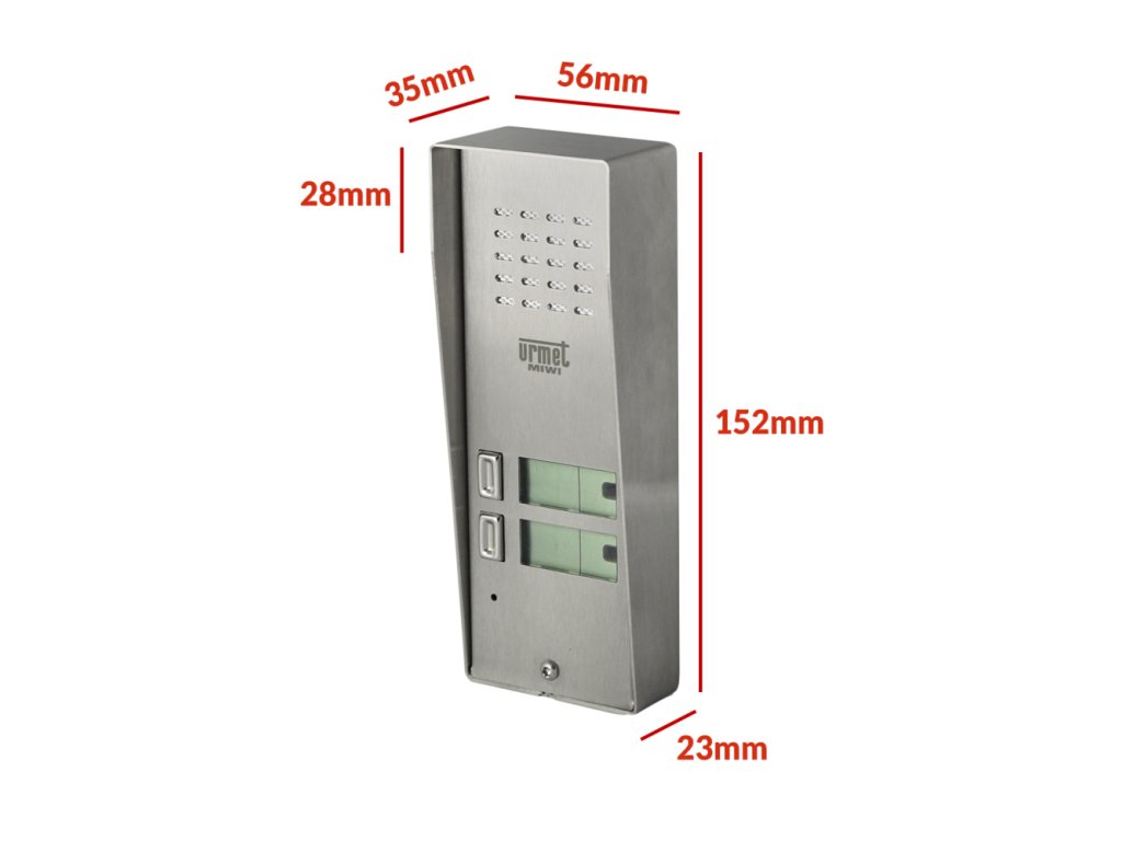Panel domového telefónu 5025/2D je vyrobený z nehrdzavejúcej ocele. Jeho malé rozmery robia vhodným pre montáž na úzke plotové stĺpiky. Ďalšie zabezpečenie poskytuje patentná skrutka upevňujúca čelnú dosku. Panel 5025/2D má zabudovaný komunikačný modul a dve tlačidlá na volanie. Všetky panely sú prispôsobené pre podomietkovú a povrchovú montáž. V prípade podomietkovej verzie sa odporúča použitie podomietkového rámu 525/RP1, ktorý maskuje prípadné nerovnosti otvoru vytvoreného pod panel – rám nie je súčasťou sady.