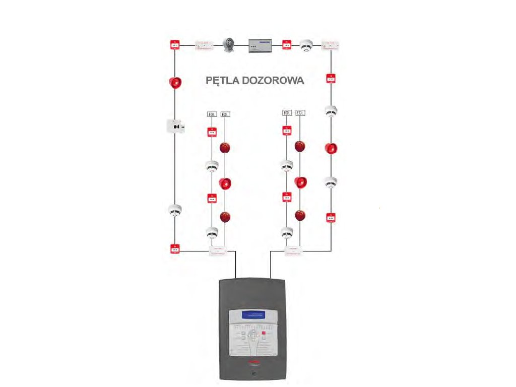 - prenáša správy o stave monitorovaného vstupu do centrálnej požiarnej signalizácie,
