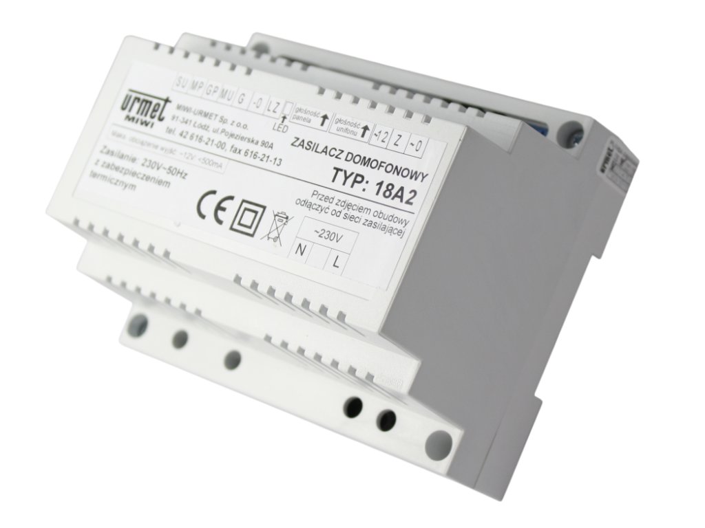 Napájací zdroj 18A2 patrí k najnovšej generácii napájacích zdrojov výroby MIWI-URMET. Rovnako ako všetky napájacie zdroje vyrábané firmou MIWI-URMET má vstavaný okruh realizujúci funkciu „vrátky“ (akustické potvrdenie vyvolávajúceho signálu na vstupnom paneli). V napájacom zdroji je možná regulácia hlasitosti panela a unifónu. Ďalším prvkom je triak zapájajúci okruh elektrického strmeňa. Napájací zdroj dodáva napájaciu energiu do celého setu. Zariadenie je prispôsobené na montáž na stenu alebo na DIN lištu.