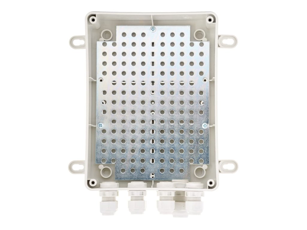 ABOX-M2 je vonkajší kryt série ABOX. Kryt je vyrobený z vysokokvalitného plastu odolného proti UV žiareniu a má stupeň ochrany IP56. Kryt má priechodky: 6 x M16 a 1 x M20 a je vybavený montážnou doskou s priechodkovým systémom v rastri 10,8 mm.