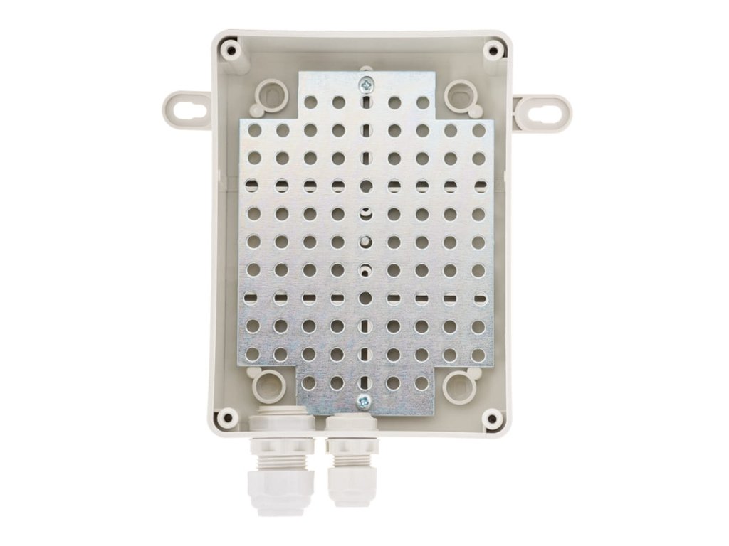 ABOX-S1 je vonkajšie puzdro série ABOX. Puzdro je vyrobené z kvalitného plastu odolného voči UV žiarenia a má stupeň krytia IP56. Puzdro má priechodky: 1 x M16 a 1 x M20 a je vybavené montážnou doskou s otvorovým systémom v rozstupe 10,8 mm.