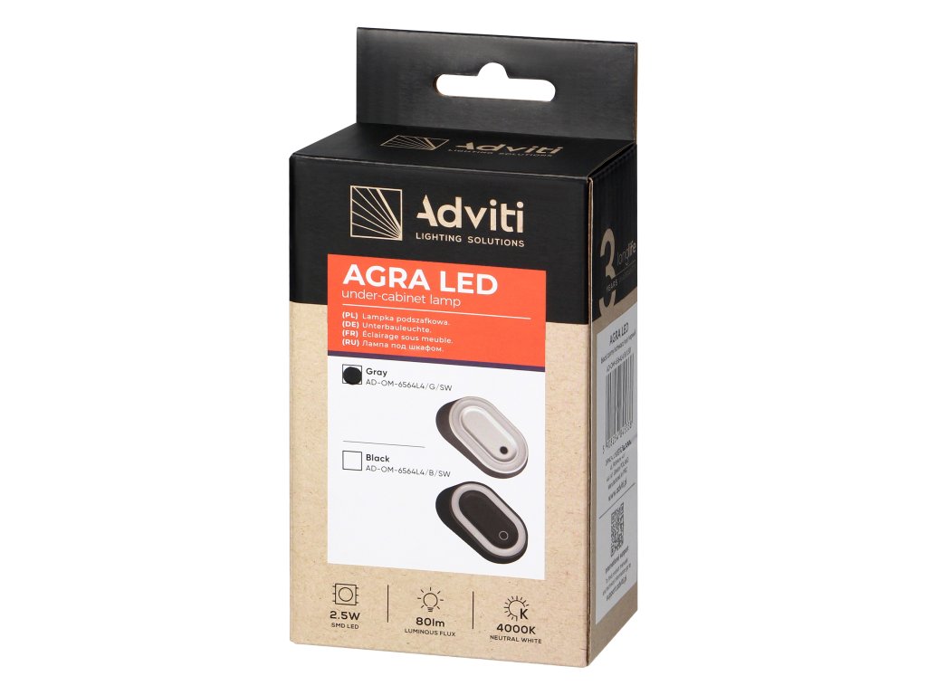 AGRA LED podskrinková lampa 2,5W, 80lm, 4000K, s bezdotykovým spínačom, sivá
