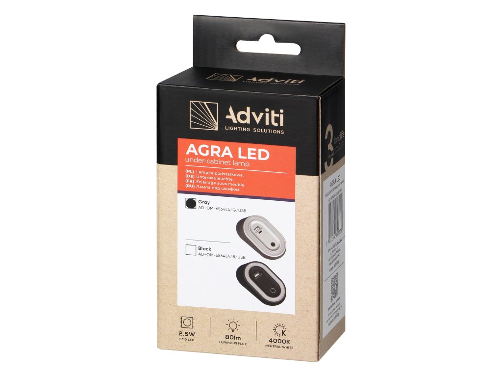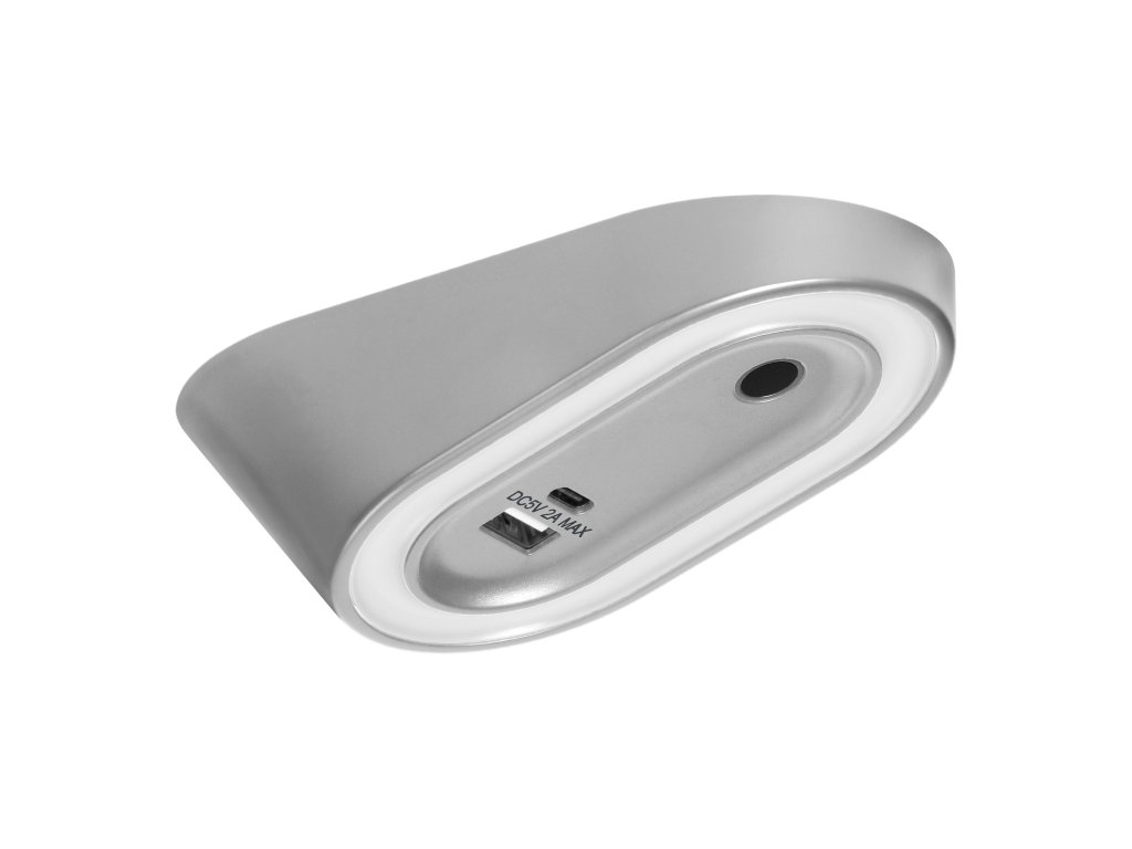 AGRA LED podskrinková lampa 2.5W, 80lm, 4000K, s bezdotykovým spínačom a funkciou nabíjania USB A+C, sivá