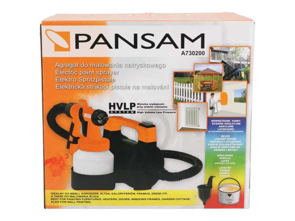 Agregát na farby PANSAM A730200 HVLP je ideálny na striekanie vodou riediteľných farieb, moridiel, olejovo-ftalátových emailov a akrylových farieb. Zariadenie dokáže striekať aj latexovéfarby na steny. Prístroj je ideálny na maľovanie stien, stropov a na renováciu domov. Spôsob striekania sa dá nastaviť zmenoupolohy držiaka trysky na striekacom stole.Vlastnosti lakovacej jednotky PANSAM A730200 HVLP: