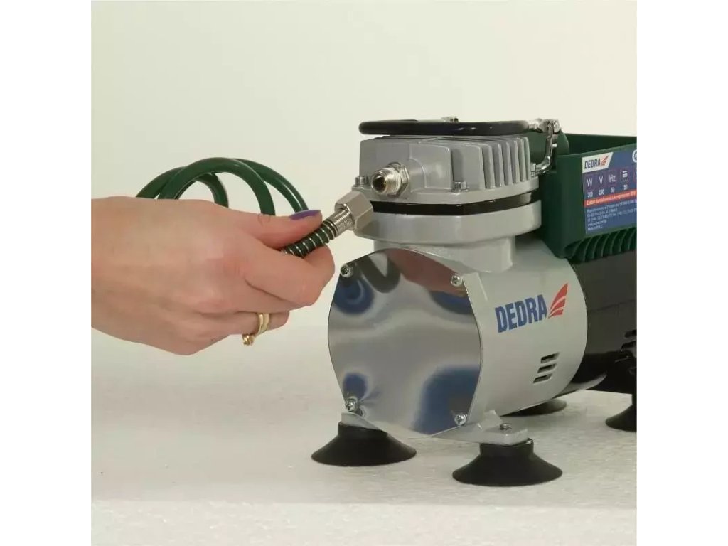 Súprava na presné maľovanie s mini kompresorom je výrobok určený na jemné modelovanie a precízne práce v domácnosti alebo dielni. Súprava obsahuje 300 W mini kompresor na hadice s maximálnym tlakom 3,5 baru. Kompresor má špirálovú hadicu na stlačený vzduch, fúkaciu pištoľ a niekoľko nástavcov, napr. na nafukovanie lôpt, matracov a kolies bicyklov. Sada obsahuje aj airbrush s maximál nym tlakom 3,5 baru. Airbrush je vybavený dvoma nádobami na farbu a pripojovacím portom na pripojenie airbrushu ku kompresoru. Priemer trysky airbrush je 0,8 mm.Vlastnosti zariadenia DEDRA DED7470: