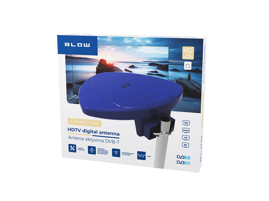 Anténa BLOW CONNECT 8K bola navrhnutá s ohľadom na podporu najvyšších štandardov obrazu, od HD, cez 4K, až po 8K. Vďaka tomu si môžete užívať krištáľovo čistý obraz a vynikajúcu kvalitu zvuku, nezávisle na kanáli, ktorý sledujete. Použitie moderných komponentov zaručuje bezproblémový príjem digitálnej pozemnej televízie v štandarde DVB-T a DVB-T2. Je to ideálne riešenie tak pre moderné televízory, ako aj tunery podporujúce vyššie rozlíšenia.