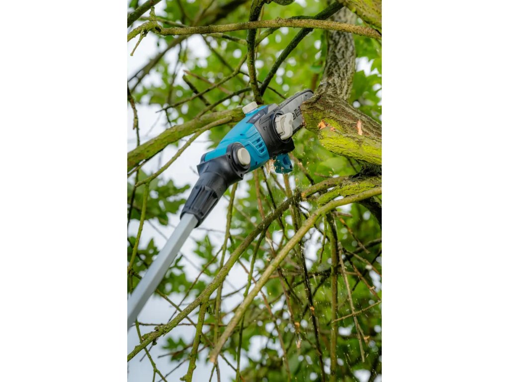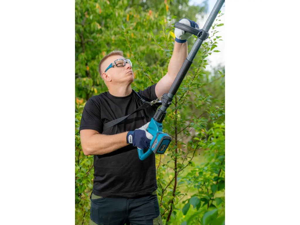 Je to zariadenie 2 v 1 - kombinácia nožnice na živý plot a tyčovej píly. Ide o nástroj, ktorý nájde svoje využitie v záhrade alebo v sade.