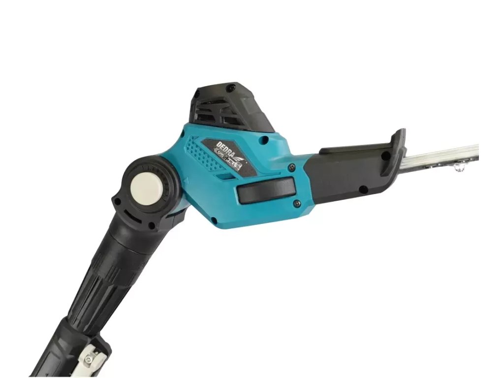 Tento tyčový plotostrih je ideálny na strihanie vysoko rastúcich konárov. Dĺžka vodiacej lišty tohto modelu je 20 cm. Vďaka dlhému výsuvnému ramenu - prístroj má celkovú dĺžku 2,7 m (s pílou) - môžete efektívne a bezpečne rezať konáre bez toho, aby ste museli demontovať rebrík. Píla je vybavená systémom, ktorý umožňuje rýchle a jednoduché nastavenie napnutia reťaze bez použitia náradia. Rýchlosť reťaze 5 m/s poskytne používateľovi rýchle a efektívne rezanie. Výložníková reťazová píla DED7096 má nastaviteľnú polohu rukoväte v rozsahu -90/0/+90 stupňov (5 stupňov otáčania) na pohodlnejšiu prácu.