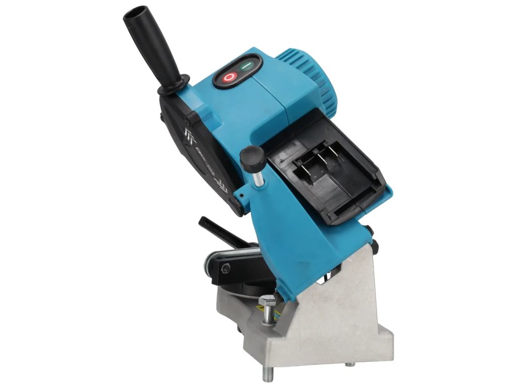 Toto zariadenie je určené na ostrenie reťazí elektrických a benzínových píl. Vďaka hĺbkomeru je vaša reťaz počas ostrenia chránená prednadmerným naberaním materiálu. Otvory v základni brúsky nar e ť a z e umožňujú jej pripevnenie k zemi, napr. k pracovnému stolu. Zabudované 14 cm vodidlo reťaze uľahčuje správne ostrenie a urýchľuje prácu. Ostrúhadlo možno použiť na ostrenie pri teplotách-35/+35 stupňov. Výber správneho uhla možno zafixovať pomocou gombíka na pracovnej doske a vyznačené značky uhla uľahčujú výbersprávneho uhla ostrenia.