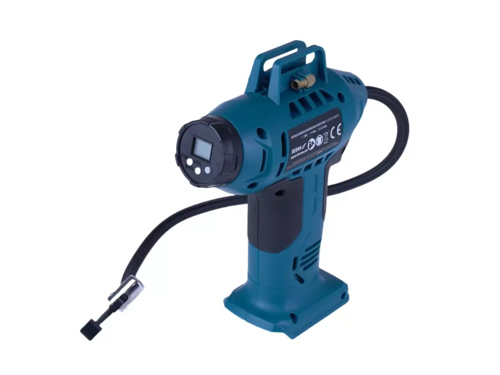 Tento nástroj je určený na rýchle nafukovanie rôznych typov pneumatík, lôpt, bazénov a nafukovacích matracov. Pištoľový tvar nafukovačky umožňuje jej pohodlné používanie a pružná opletená hadica zaručuje, že nafukovačku môžete pripojiť aj na ťažko prístupných miestach, napr. pri hlboko uloženom ventile na ráfiku a podobne. Hadica čerpadla je dlhá 50 cm a na konci má robustný kovový ventil, ktorý zaručuje dlhú životnosť. Integrované LED svetlo osvetľuje pracovný priestor, čo je užitočné najmä po zotmení, keď chcete čo najrýchlejšie napumpovať koleso a vrátiť sa domov. Rukoväť bola tvarovaná podľa tvaru ruky a navyše pokrytá mäkkou gumou na zlepšenieúchopu. Vstavaný ovládací panel s LCD displejom umožňuje automatický chod čerpadla po nastavení požadovaného tlaku a zastavenie čerpania po dosiahnutí požadovanej hodnoty. LCD displej umožňuje automatický chod čerpadla po nastavení požadovaného tlaku a zastavenie čerpania po dosiahnutí požadovaného tlaku. Maximálny prevádzkový tlak je 11 barov, čo umožňuje nafúknuť prakticky všetky nafukovacie predmety. Maximálny prietok vzduchu je 12 l/mi n, čo zaručuje rýchle a bezproblémové nafúknutie. Už žiadne dýchanie pri nafukovaní kolesa bicykla v nútenejp o l oh e. Súprava obsahuje kompletnú sadu koncoviek na nafukovanier ô z ny ch predmetov: koncovku na autodoplnky, koncovku na matrace a ihlu nanafukovanie lôpt. Nepostrádateľná pomôcka pre trénerov a športových inštruktorov,ktorí potrebujú kontrolovať tlak veľkého počtu lôpt atď., ako aj pre amatérov na dlhých cyklistických jazdách, kde je väčšie rizikoprepichnutia pneumatiky.