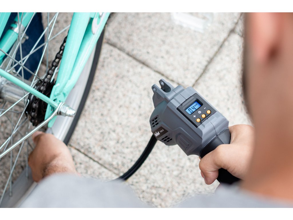 Nafukovaniemožno vykonať dvoma spôsobmi: buď manuálne, podržaním spínača, kým sa nedosiahne požadovaný tlak, alebo automaticky, nastavením požadovaného tlaku pomocou tlačidiel +/- - kompresor automaticky zastaví nafukovanie po dosiahnutí nastaveného limitu. Výhodou jednotky je podsvietený LCD displej s digitálnym odpočtom, ktorý nepretržite zobrazuje nárast tlaku čerpaného predmetu.