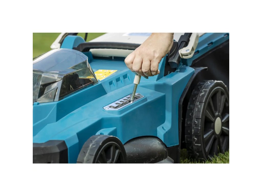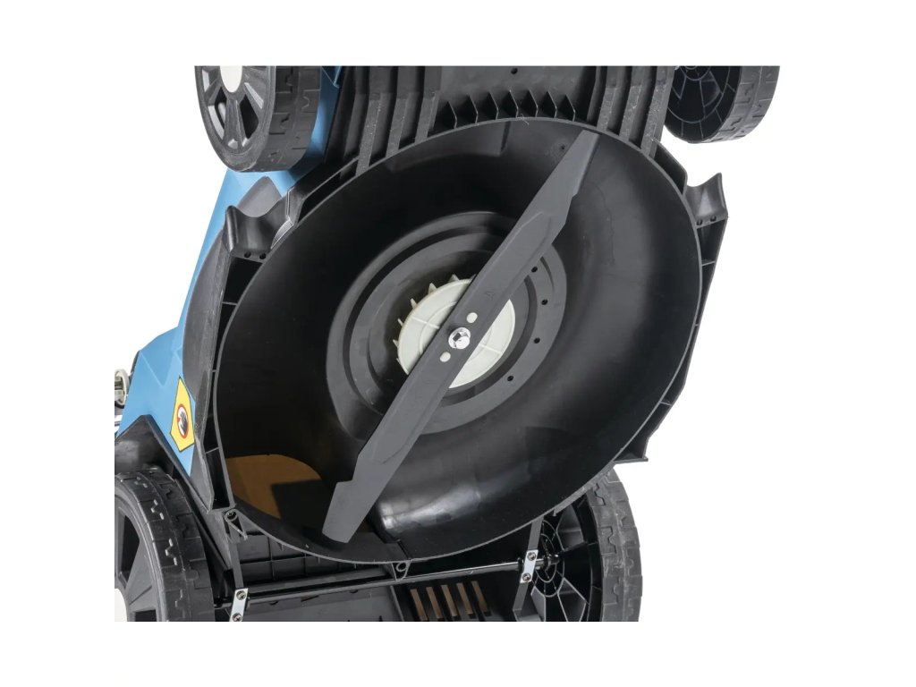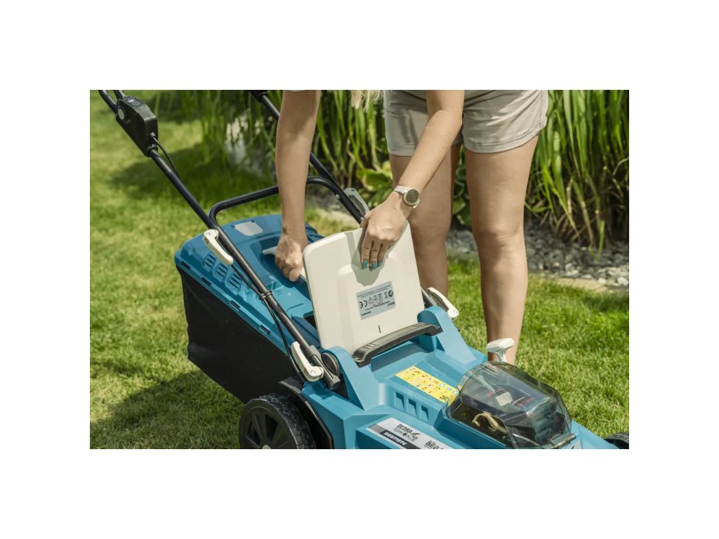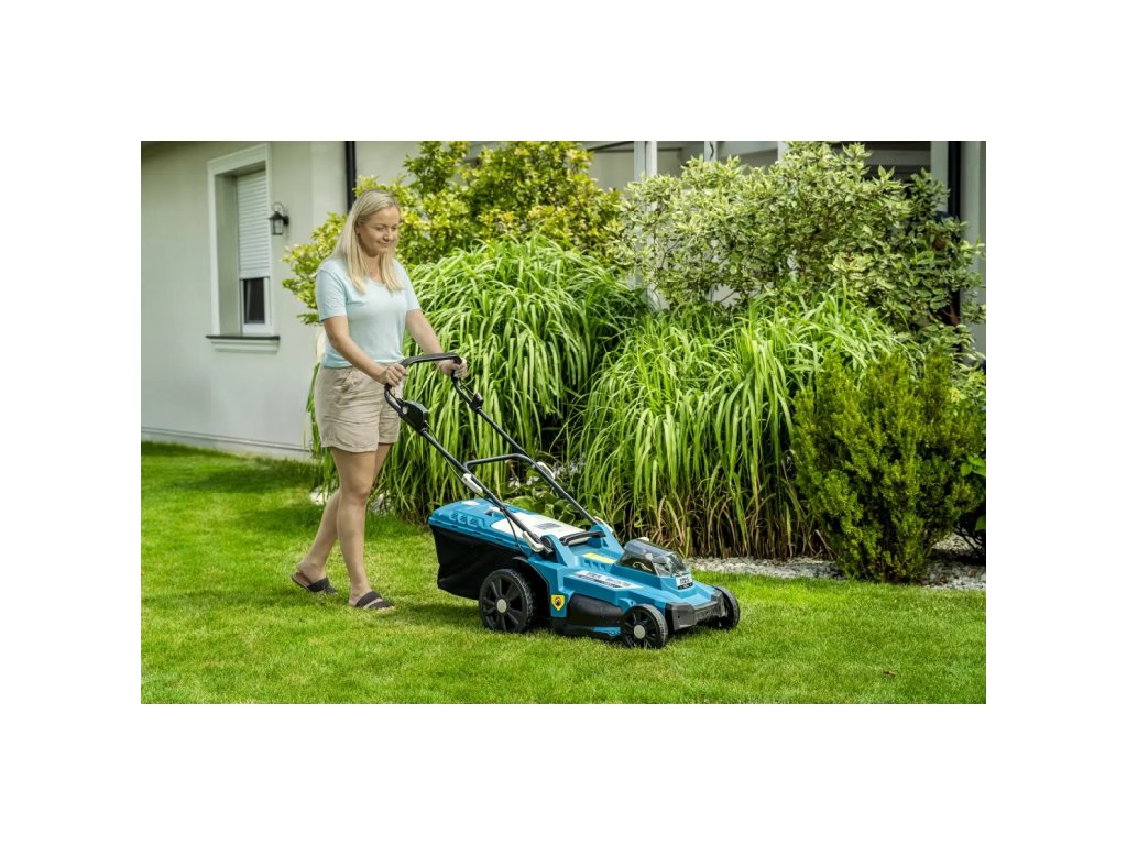 Tento stroj je určený na kosenie a starostlivosť o trávnik. Poháňa ho robustný bezkartáčový motor. Táto konštrukcia umožňuje veľmi tichú prevádzku. So šírkou záberu 430 mm je kosačka ideálna pre stredne veľké a väčšie záhrady. Vďaka kompaktnej, ľahkej konštrukcii a veľký m kolesám sa s ním ľahko manévruje. Výška kosenia je plynule nastaviteľná v 6 polohách (25-75 mm). Kosačka je vybavená funkciou mulčovania/mletia, ktorá znižuje objem trávy. Skladacia rukoväť a sieťový kôš uľahčujú manipuláciu a prepravu. Väčší objem zásobníka (50 litrov) na dlhšiu prácu bez vyprázdňovania koša. Bezpečnostný vypínač a prídavný kľúč chránia pred náhodným spustením.