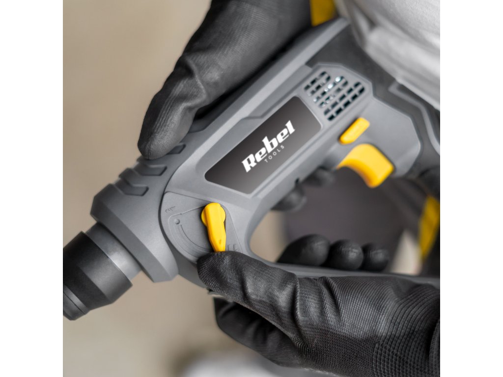 Veľkou výhodou príklepovej vŕtačky Rebel je pracovné svetlo, ktoré vám uľahčí prácu v tmavých, ťažko prístupných miestach. Okrem toho medzi výhody tohto elektrického náradia určite patrí jeho nízka hmotnosť len 1,25 kg a ergonomická pogumovaná rukoväť, ktorá poskytuje pohodlie pri používaní.