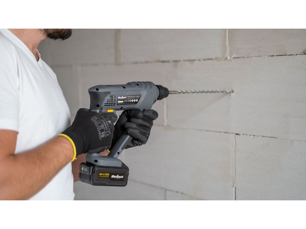 RB-1011 je akumulátorová vŕtačka a v závislosti od vašich potrieb si môžete kúpiť jeden z dvoch modelov - 2 Ah (RB-2001) alebo 4 Ah (RB-2002). Výhodou týchto batérií je, že sú univerzálne a pasujú do väčšiny sortimentu Rebel Tools.