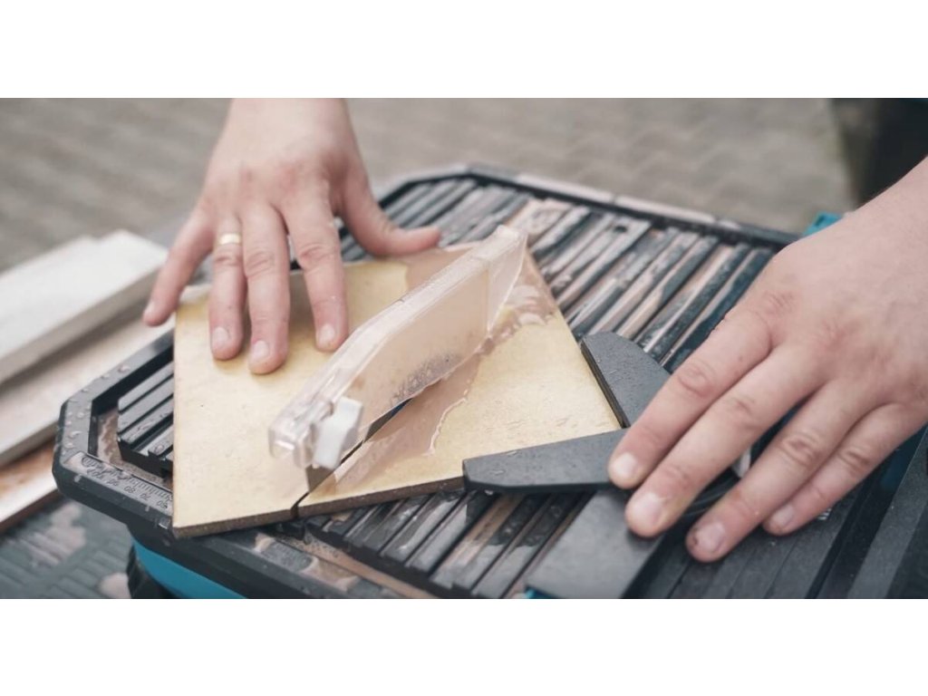 Motor napájaný z jednej batérie dosahuje maximálne 3800 otáčok za minútu, vďaka čomu dokáže efektívne rezať dlaždice s hrúbkou až 24 mm pri 90? alebo 16 mm pri 45?. Zabudovaný zásobník/nádrž na vodu zabezpečuje, že pri rezaní nevzniká oblak prachu ako pri bežnej uhlovej brúske.