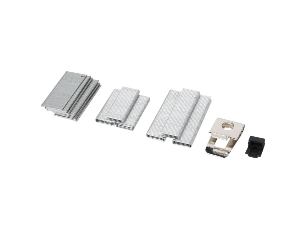 Tento nástroj sa používa na spájanie rôznych komponentov pomocou sponiek alebo klincov. Môže sa použiť na kutilské, čalúnnické alebo pokrývačské práce. Pohodlný volič nastavuje hnaciu silu sponiek a klincov. Zásobník obsahuje 100 sponiek. Osvetlenie LED zvyšuje komfort práce prislabom osvetlení. Náradie je vybavené bezpečnostným zariadením, ktoré zabraňuje náhodnému spusteniu.