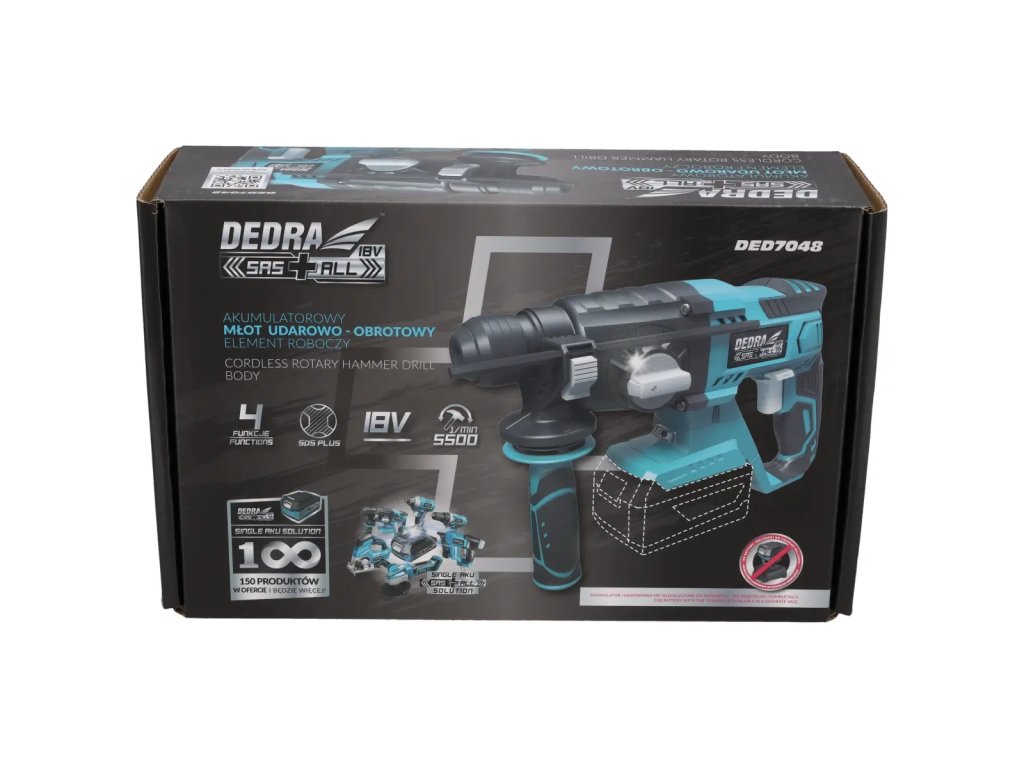 Vlastnosti akumulátorového príklepového vŕtacieho kladiva DEDRA SAS+ALL DED7048: