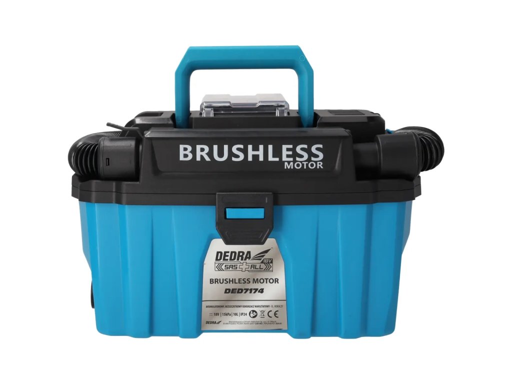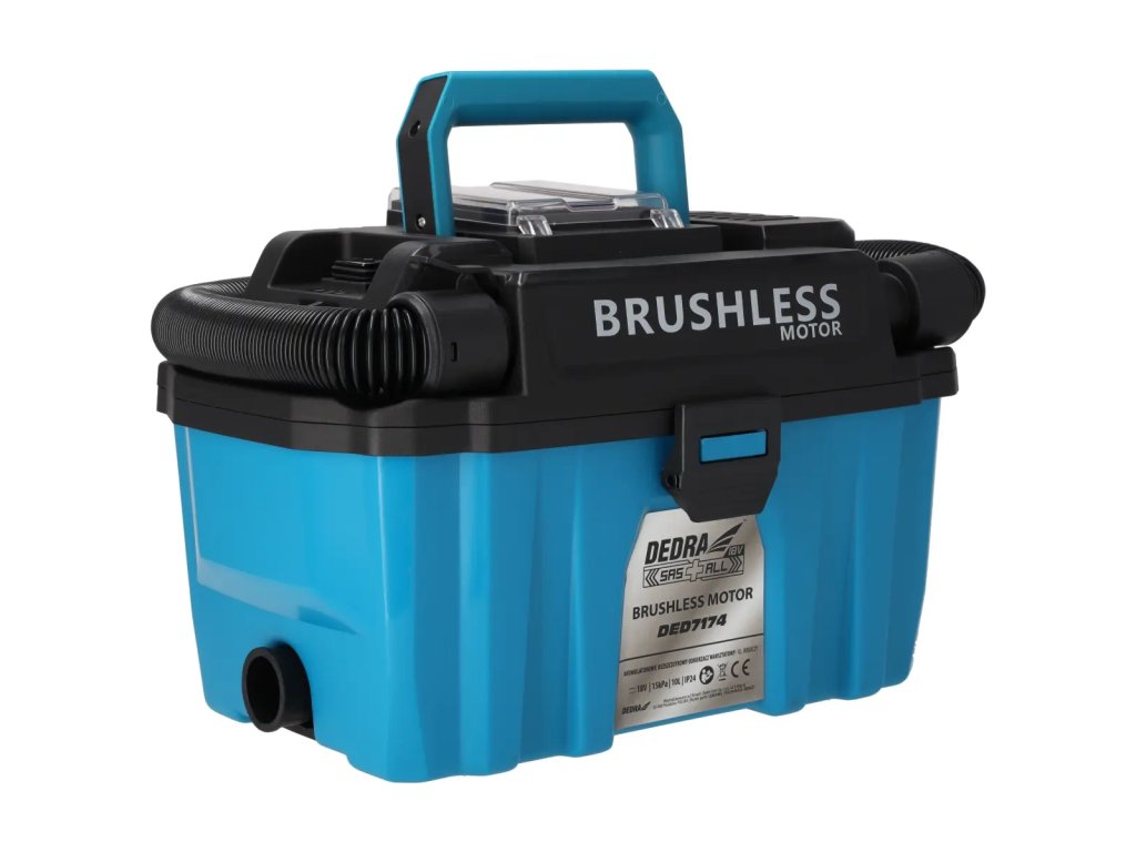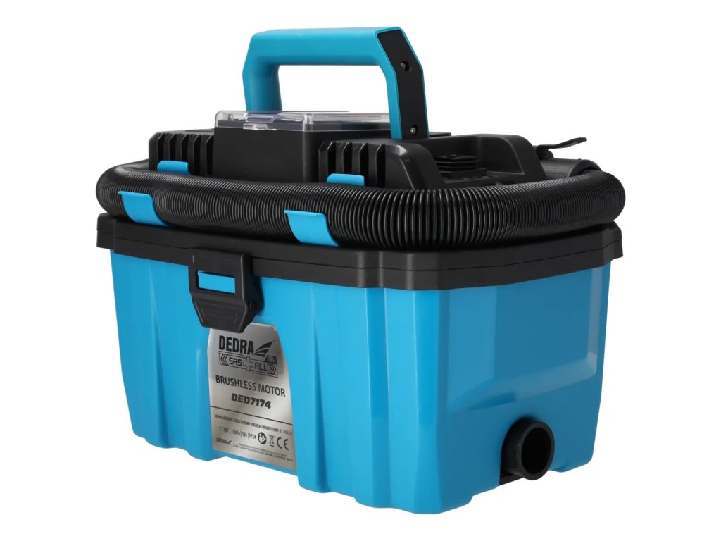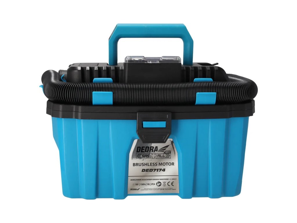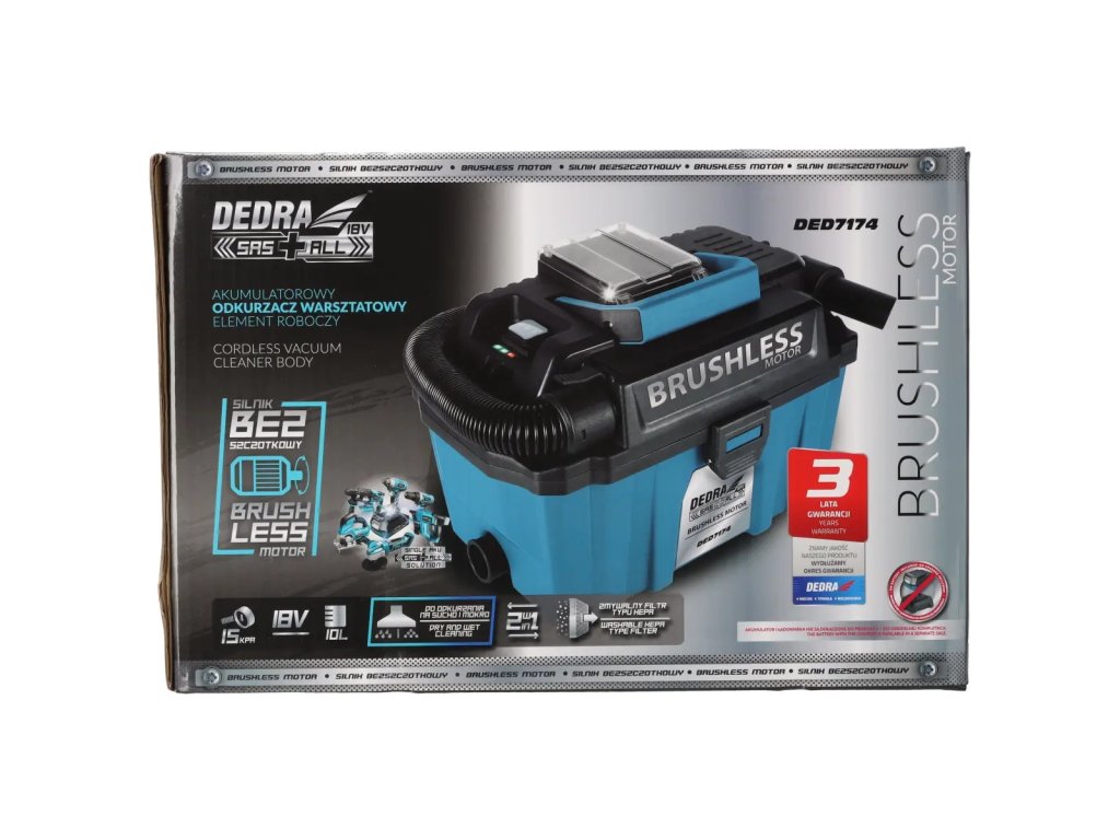 Akumulátorový vysávač DED7174 je určený na suchú a mokrú prácu (odsávanie vody). Má bezkartáčový motor s vyššou účinnosťou ako tradičné kefové motory. Nádoba má objem 10 litrov a je vyrobená z odolného plastu. Vďaka pohodlnej rukoväti a kolieskam na základni sa pohodlne používa a ľahko prepravuje. Čistička má umývateľný filter HEPA - čistenie filtra ešte nikdy nebolo také jednoduché. Jednoducho ho opláchnite vodou, aby ste obnovili jeho vysoké filtračné vlastnosti. Okrem toho je skrinkový vysávač DED7174 vybavený funkciou fúkania na odstraňovanie prachu, lístia atď. z ťažko prístupných miest.
