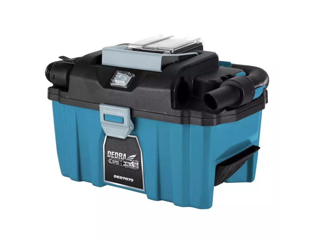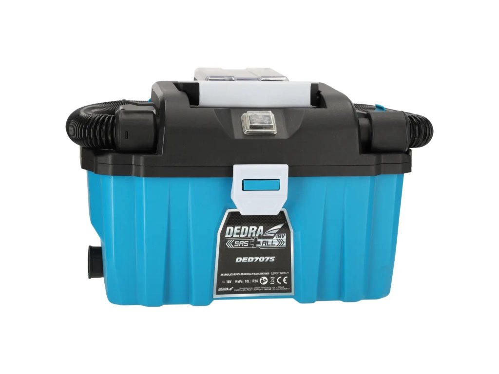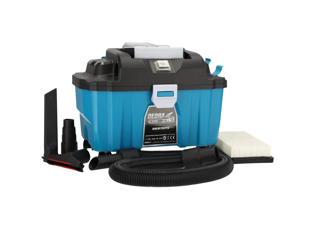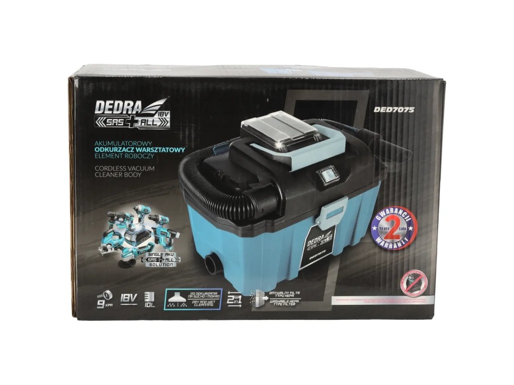 Akumulátorový vysávač DED7075 je určený na suchú a mokrú prácu (odsávanie vody). Spotrebič má výkonný kefový motor. Nádrž má objem 10 litrov a je vyrobená z odolnéhop l a s t u . Vďaka pohodlnej rukoväti a kolieskam na základni sa pohodlne používa a ľahko prepravuje. Vysávač má umývateľný HE PA filter-čistenie filtraešte nikdy nebolo také jednoduché. Jednoducho ho opláchnite vodou, aby ste obnovili jeho vysoké filtračné vlastnosti. Okrem toho je skrinkový drvič DED7075 vybavený funkciou fúkania na odstraňovanie prachu, lístiaatď.z ťažko prístupných povrchov.