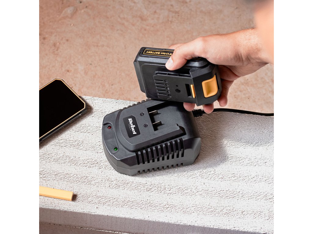Aby ste mohli pracovať dlhšie bez prestávok na nabíjanie batérie, ponúka Rebel Tools aj špeciálny 20 V akumulátor s kapacitou 2 Ah, ktorý účinne predĺži dobu chodu mnohých nástrojov, ako sú vŕtačka/žmýkačka, fúkač, vyžínač a vyžínač, ako aj príklepová píla a kompresor. Dodatočný akumulátor je ideálnou náhradou, keď sa pripojený akumulátor práve nabíja. Umožňuje vám to ešte viac sa zapojiť do domácich prác.