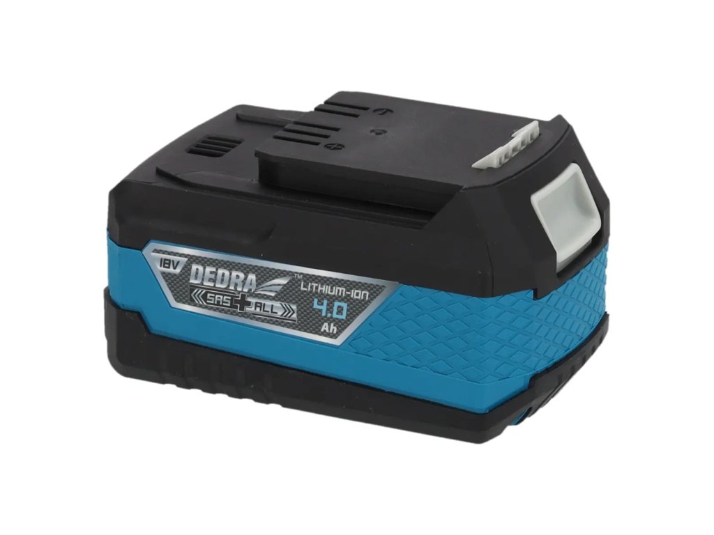 Táto nabíjateľná batéria s kapacitou 4,0 Ah je základným produktom pre nabíjateľné náradie radu SAS+ALL. Batéria jevyrobená pomocou lítium-iónovej technológie, ktorá umožňuje nabíjanie batérie kedykoľvek bez pamäťového efektu. 3 LED diódy na kryte batérie indikujúaktuálny stav nabitia (100 %). Spodná časť krytu je pokrytá gumou pre väčšie pohodlie a bezpečnosť pred náhodným poškodením.