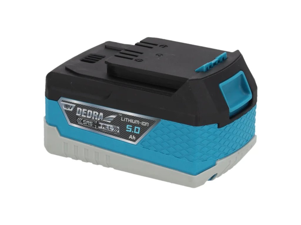 Táto nabíjateľná batéria s kapacitou 5,0 Ah je základným produktom pre nabíjateľné náradie radu SAS+ALL. Batéria je vyrobená pomocou lítium-iónovej technológie, ktorá umožňuje nabíjanie batérie kedykoľvek bez pamäťového efektu. 3 LED diódy na kryte batérie indikujúaktuálny stav nabitia (100 %). Spodná časť krytu je pokrytá gumoupre väčšie pohodlie a bezpečnosť pred náhodným poškodením.