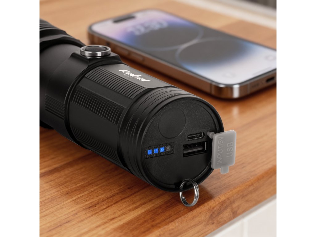 Baterka Rebel je vybavená výkonným akumulátorom s kapacitou 4500 mAh, ktorý zabezpečuje až 6 hodín prevádzky v režime 25%. Vďaka funkcii power banku si môžete v prípade potreby nabíjať aj telefón alebo iné mobilné zariadenie. Rýchle a pohodlné nabíjanie umožňuje port USB-C a pevné puzdro s triedou IP65 chráni baterku pred vodou a prachom.