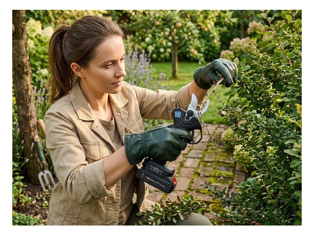 Akumulátorové nožnice na konáre umožňujú jednoduché a pohodlné strihanie konárov s hrúbkou do 30 mm. Vybavené odolnými čepeľami, umožňujú jednoduché strihanie jednou rukou. Štíhla konštrukcia a nízka hmotnosť zabezpečujú, že nástroj je pohodlný na použitie a ideálny na dlhodobú prácu v záhrade.