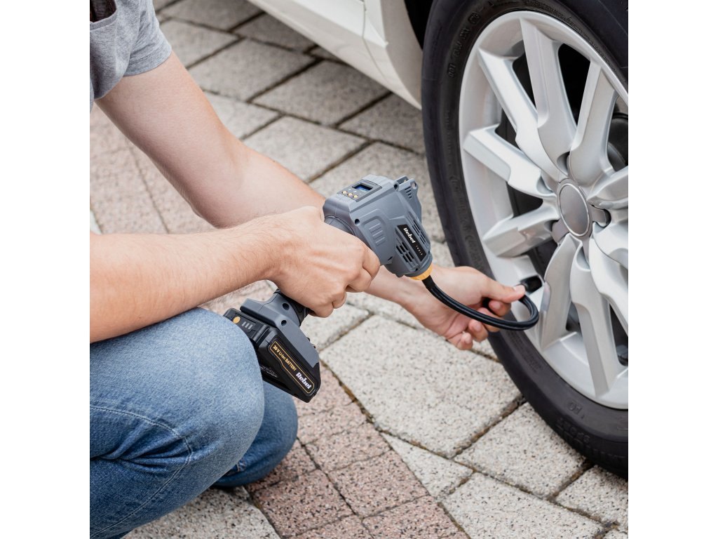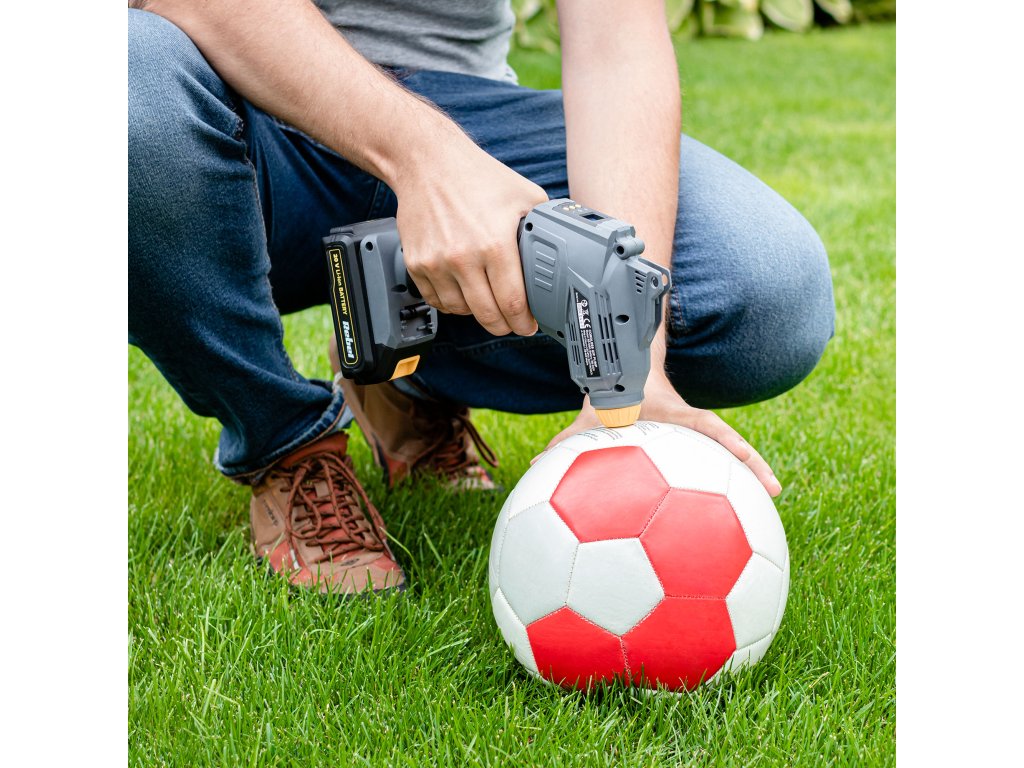 Nafukovanie sa dá vykonať dvoma spôsobmi: manuálne, podržaním spínača, kým sa nedosiahne požadovaný tlak, alebo automaticky, nastavením zodpovedajúceho tlaku pomocou tlačidiel +/- - kompresor automaticky zastaví nafukovanie po dosiahnutí nastaveného limitu. Výhodou zariadenia je podsvietený LCD displej s digitálnym zobrazením, ktorý bude priebežne ukazovať nárast tlaku v nafukovanom objekte.