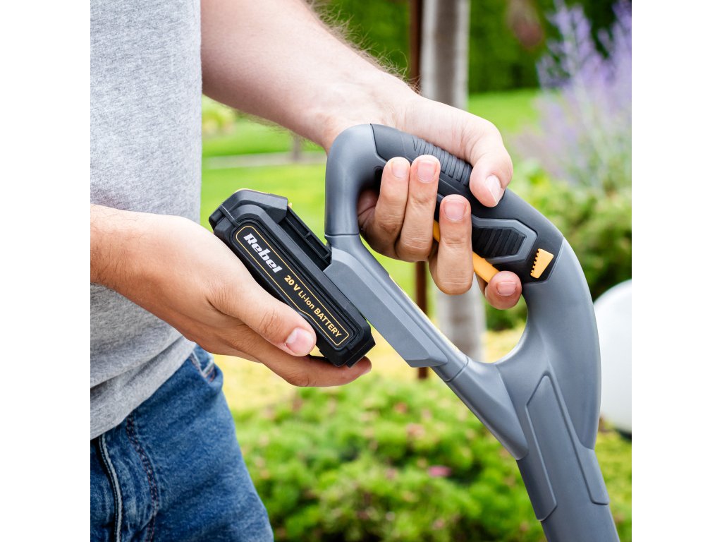 Batéria a nabíjačka sa predávajú samostatne. Ak je teda vaša záhrada veľmi náročná, vyberte si z ponuky vymeniteľných 20 V, 2 A akumulátorov Rebel Tools, ktoré vám umožnia pracovať bez zbytočných dlhých prestávok pri nabíjaní.