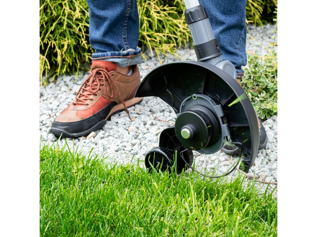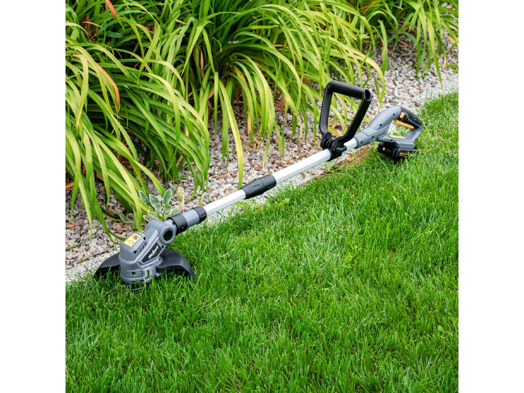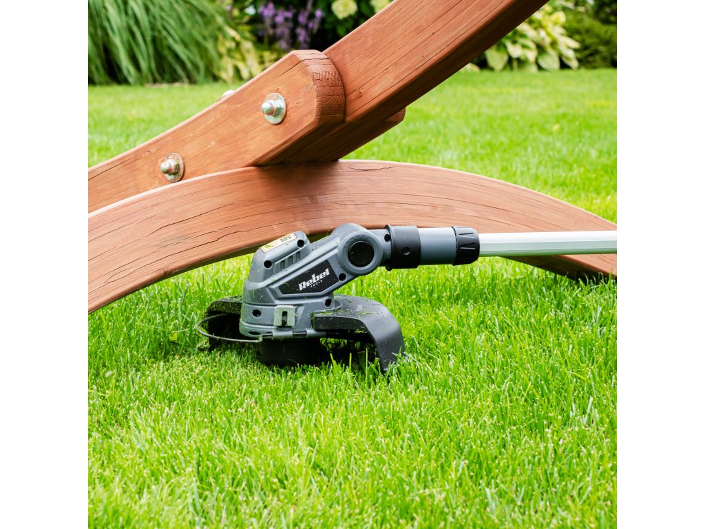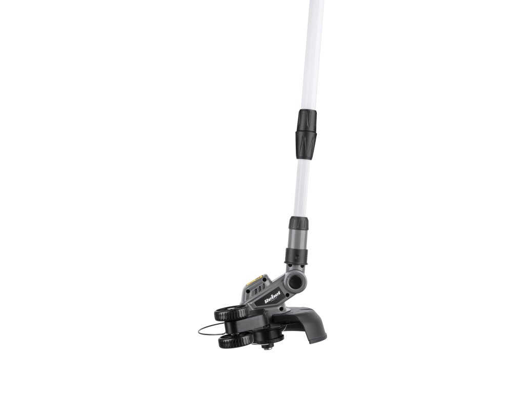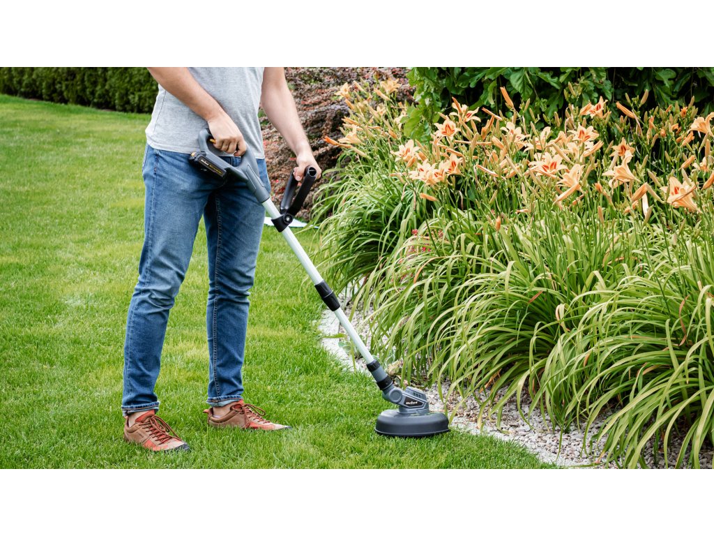 Zastrihávač vám umožňuje nielen nastaviť rotáciu a uhol prednej rukoväte aj uhol hlavy, ale umožňuje aj nastavenie dĺžky teleskopického ramena. Tým je zabezpečená účinnosť kosenia a pohodlie pri práci. Ďalšou veľkou výhodou zariadenia je jeho bezdrôtová prevádzka, takže môžete zabudnúť na predlžovacie káble a zamotané káble. Okrem toho je zastrihávač vybavený indikátorom nabitia batérie, aby ste mohli kontrolovať svoj pracovný čas.