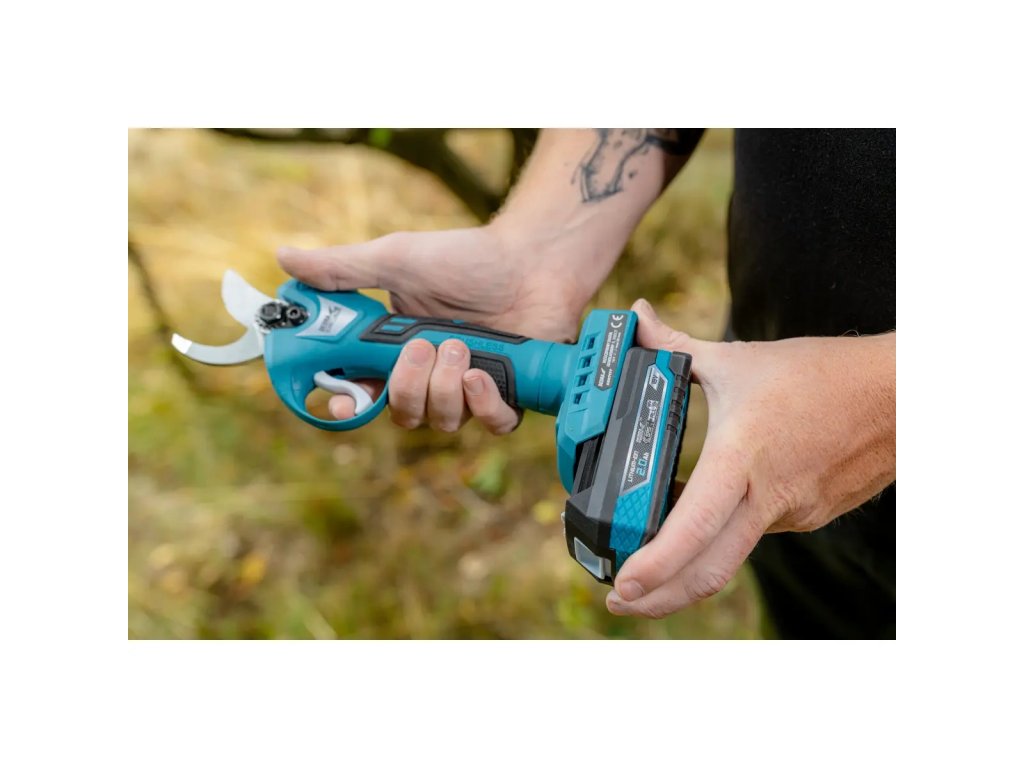Akumulátorový nožnice sú nástroj vytvorený s dôrazom na údržbu stromov, kríkov a čerstvých výhonkov v záhrade alebo sade. Predstavujú vynikajúcu alternatívu k tradičným ručným nožniciam, eliminujúc potrebu sily a významne redukujú únavu počas dlhšej práce. Vďaka ľahkej konštrukcii a ergonomickej, gumenej rukoväti zariadenie pevne sedí v ruke, zabezpečujúc plný komfort používania.