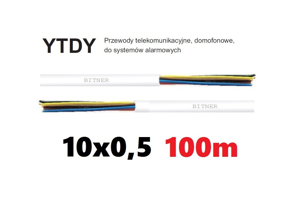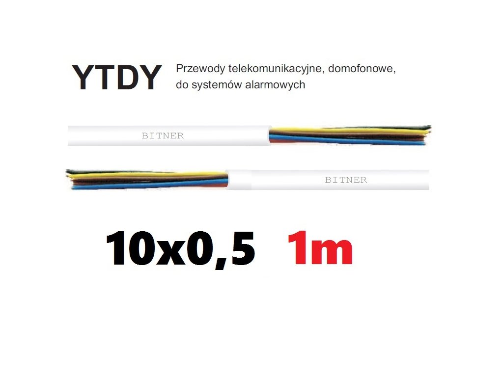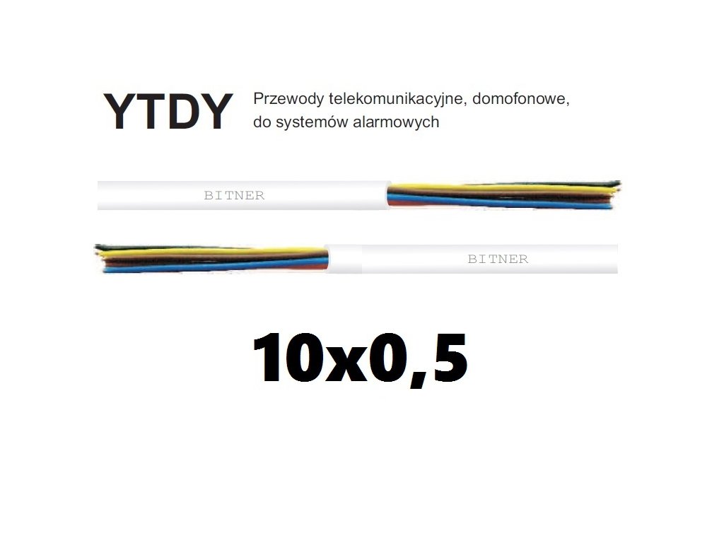 Kábel YTDY 10x0,5mm od firmy Bitner je to telekomunikačný kábel (T), jednodrôtová žila s priemerom 0,5mm (D), PVC izolácia (Y) a PVC plášť (Y).