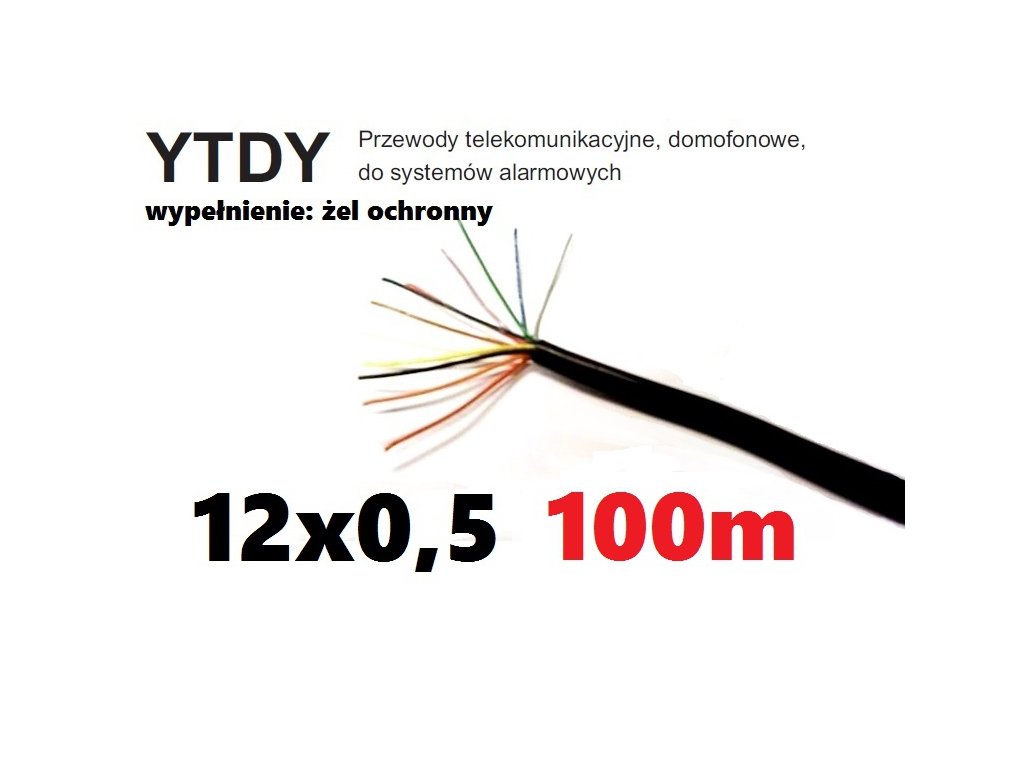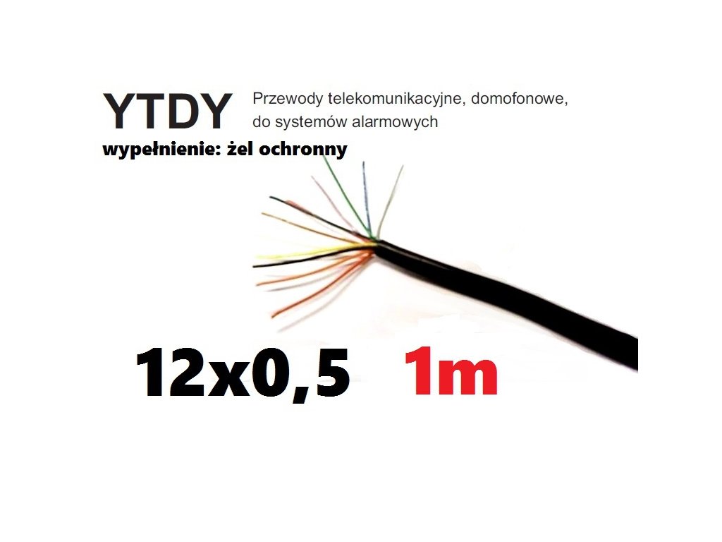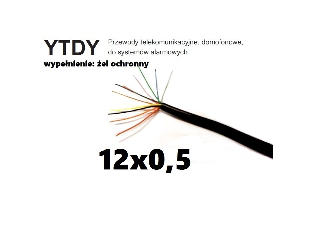 Kábel YTDY 12x0,5mm gélovaný od firmy Bitner je telekomunikačný kábel (T), jednodrôtová žila s priemerom 0,5mm (D), PVC izolácia (Y) a PVC plášť (Y).