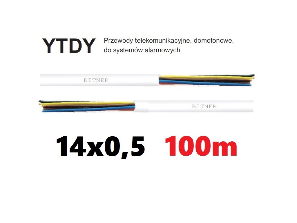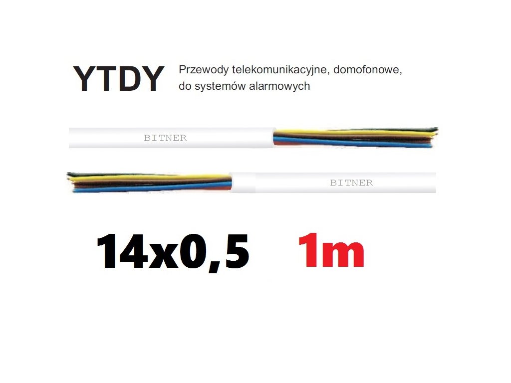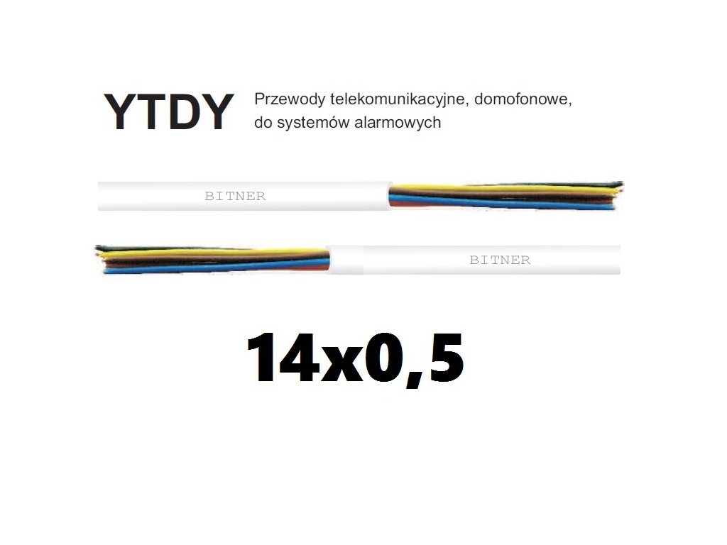 Kábel YTDY 14x0,5mm od spoločnosti Bitner je telekomunikačný kábel (T), vedenie jedno-drôtové s priemerom 0,5mm (D), s PVC izoláciou (Y) a PVC povlakom (Y).