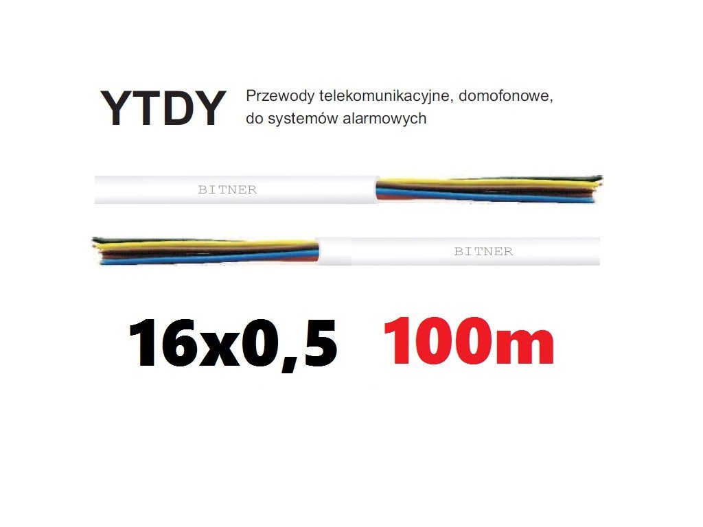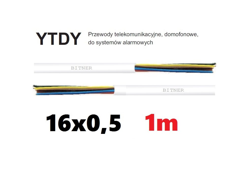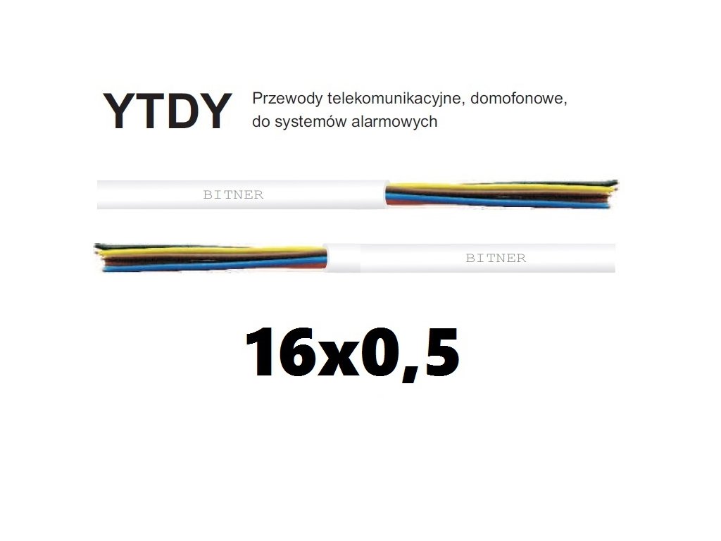Kábel YTDY 16x0,5mm (4x4x0,5mm) od spoločnosti Bitner je to telekomunikačný kábel (T), jedno-žilový jadro s priemerom 0,5mm (D), s polvinitovou izoláciou (Y) a polvinitovým plášťom (Y).
