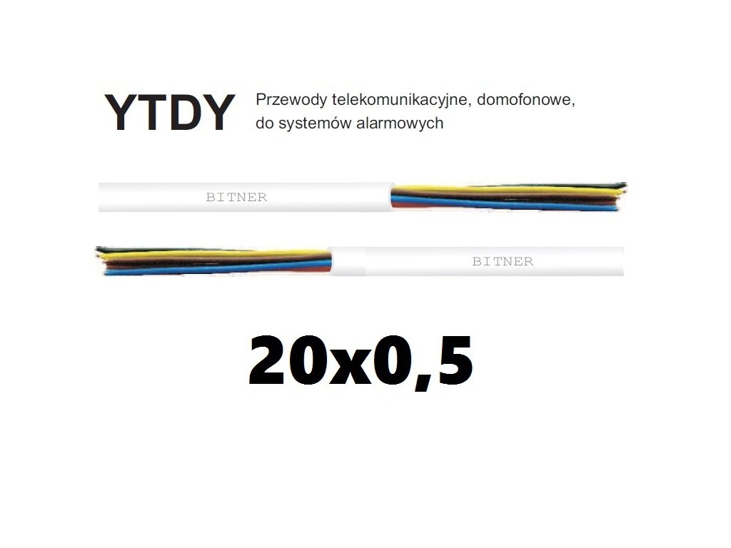 Kábel YTDY 20x0,5mm (5x4x0,5mm) od firmy Bitner je telekomunikačný kábel (T), jednožilový drôt o priemere 0,5mm (D), PVC izolácii (Y) a PVC povlaku (Y).