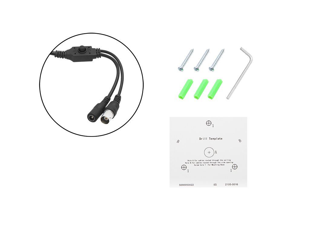 Predná časť kamery je vyhotovená z kovu, čo prispieva k vyššej odolnosti a lepšej ochrane v náročnejších podmienkach. Plastová noha uľahčuje montáž a nastavenie smeru kamery.