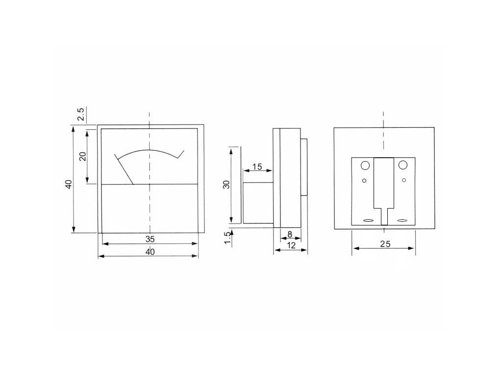 Rozmery produktu sú uvedené v nákrese v galérii. Ide o panelový merací prístroj určený na presné vizuálne sledovanie jednosmerného prúdu. Pri montáži odporúčame overiť kompatibilitu rozmerov a zapojenia s vašou konkrétnou aplikáciou.