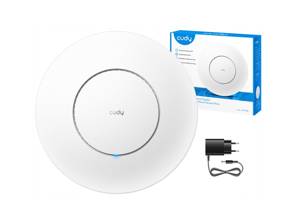 Ponúkaný značkou Cudy AP1300 Access Point je pokročilý prístupový bod WiFi 5, ponúkajúci rýchlosť až do 1167 Mb/s, pracujúci v dvoch pásmach – 5 GHz a 2,4 GHz. Vďaka podpore technológie MU-MIMO, Access Point Cudy AP1300 umožňuje súčasnú správu siete WLAN pre viacero klientských zariadení. Treba zdôrazniť, že prístupový bod môže tiež slúžiť ako brána do siete (ako lokálnej LAN, tak aj do internetu WAN) pre všetky druhy notebookov, smartfónov, herných konzol, tabletov či televízorov a všetkých zariadení využívajúcich sieť WiFi. Router dosahuje maximálnu prenosovú rýchlosť do 1167 Mb/s, pričom zároveň poskytuje rozšírené pokrytie signálom veľkej oblasti.