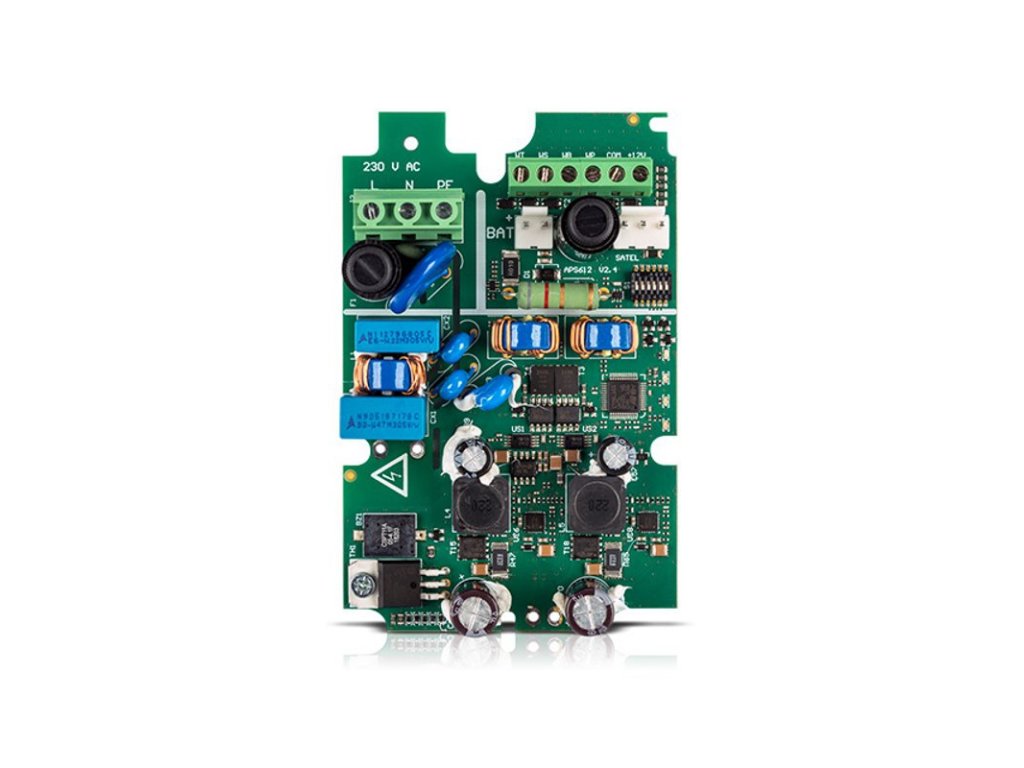 V konštrukcii APS-612 bol použitý spínaný napájací zdroj topológie LLC charakterizujúci sa vysokou účinnosťou a zabezpečujúci veľmi dobré napájacie parametre pri nízkych tepelných stratách. Zariadenie možno napájať priamo z siete 230 V AC, vďaka čomu napájací zdroj nevyžaduje montáž dodatočného sieťového transformátora. APS-612 disponuje ochranami proti skratu a preťaženiu. Je vybavený filtrom proti rušeniu na vstupe a aktívnym obvodom korekcie účinníka PFC (do 0,98). K napájaciemu zdroju možno priamo pripojiť akumulátor. Mikroprocesorová kontrola stavu a parametrov akumulátora, presná regulácia napätia a funkcia automatického odpojenia v prípade nadmerného vybitia dbajú o stav akumulátora a predlžujú jeho životnosť, čím obmedzujú možnosť poškodenia.