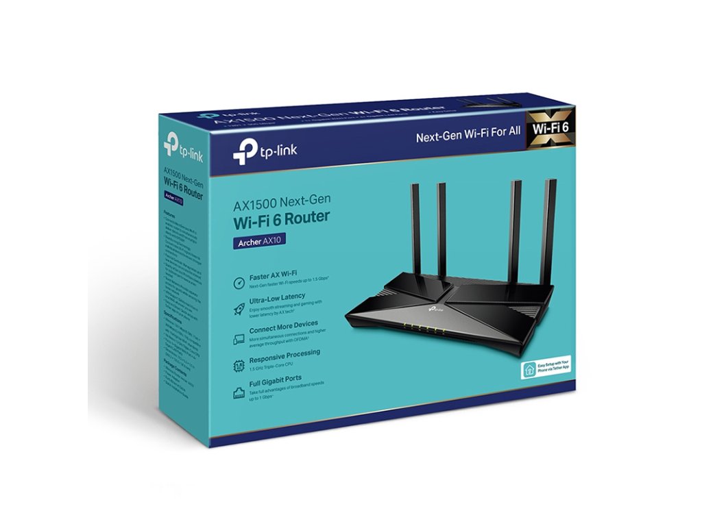 Moderný router AX1500 využíva najnovšiu technológiu bezdrôtového pripojenia Wi-Fi 6 na zabezpečenie vysokých rýchlostí a výkonnosti, ako aj na minimalizáciu výpadkov pripojenia. Ponúka rýchlosti až do 1,5 Gb/s (1201 Mb/s v pásme 5 GHz a 300 Mb/s v pásme 2,4 GHz). Využitie technológie OFDMA a MU-MIMO umožňuje pripojiť do bezdrôtovej siete viac zariadení s viditeľným znížením latencie v prenose. O všetky akcie vykonávané v sieti sa stará výkonný trojjadrový procesor 1,5 GHz. Štyri externé antény operujúce v smerovej transmisii zaručujú vytvorenie silnej a spoľahlivej bezdrôtovej siete po celom dome, zatiaľ čo 4 gigabitové porty LAN zaisťujú rýchle káblové pripojenia. Aplikácia Tether dostupná na mobilných zariadeniach s operačným systémom Android alebo iOS umožňuje rýchlu a jednoduchú konfiguráciu routera, ktorý prostredníctvom kompatibility s zariadením Amazon Alexa umožňuje aj používanie hlasových príkazov na jeho ovládanie.