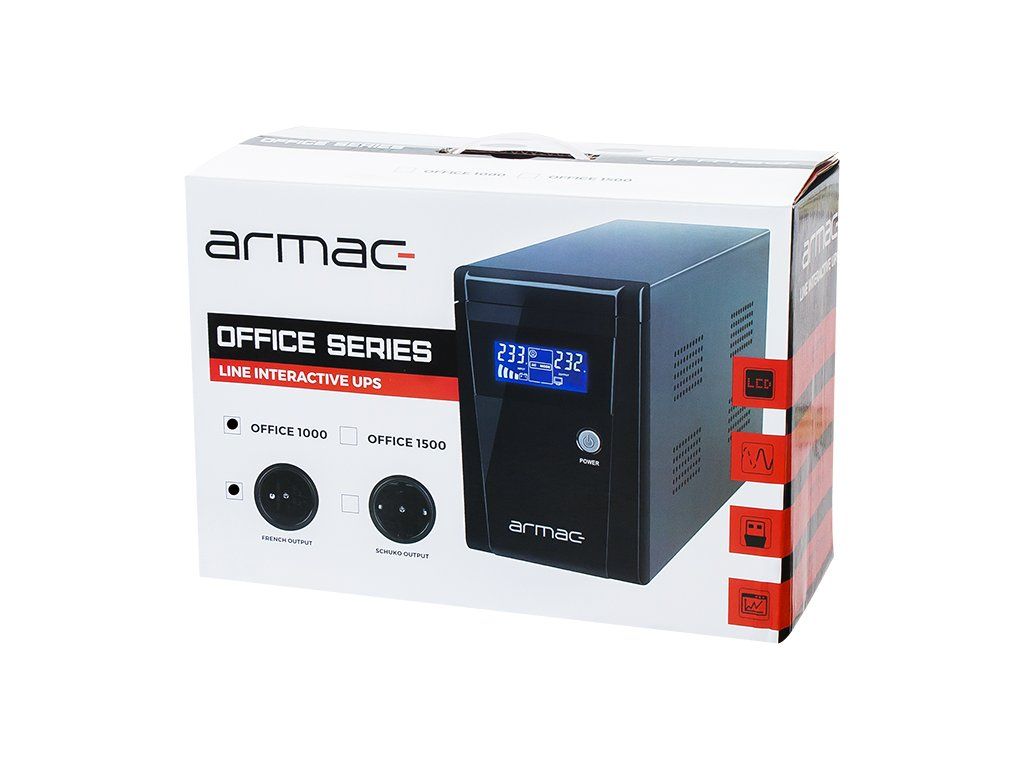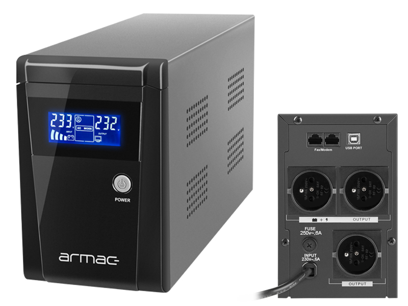 ARMAC OFFICE 1000 UPS je line-interactive záložný zdroj určený na ochranu citlivej elektroniky pred výpadkami, prepätiami, podnapätím aj ďalšími poruchami v sieti. Vďaka menovitému výkonu 1000 VA, zabudovanej automatickej regulácii napätia AVR a LCD displeju ponúka prehľadnú a praktickú kontrolu nad napájaním pripojených zariadení. Je vhodný najmä pre pracoviská, menšie kancelárie, pokladničné systémy, routery, počítače a ďalšiu kancelársku techniku.