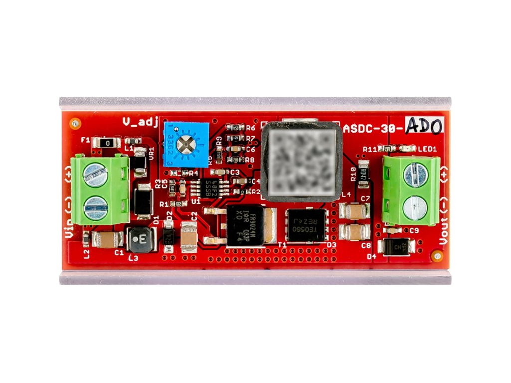 ASDC-30-AD0-OF je neizolovaný menič DC/DC znižujúci napätie. Zariadenie je napájané napätím 48V DC a poskytuje stabilizované, potenciometrom regulované výstupné napätie na úrovni 3-12V DC. Zariadenie zabezpečuje stabilné napájanie pre prvky poplachových systémov, kamier, zariadení siete WLAN.